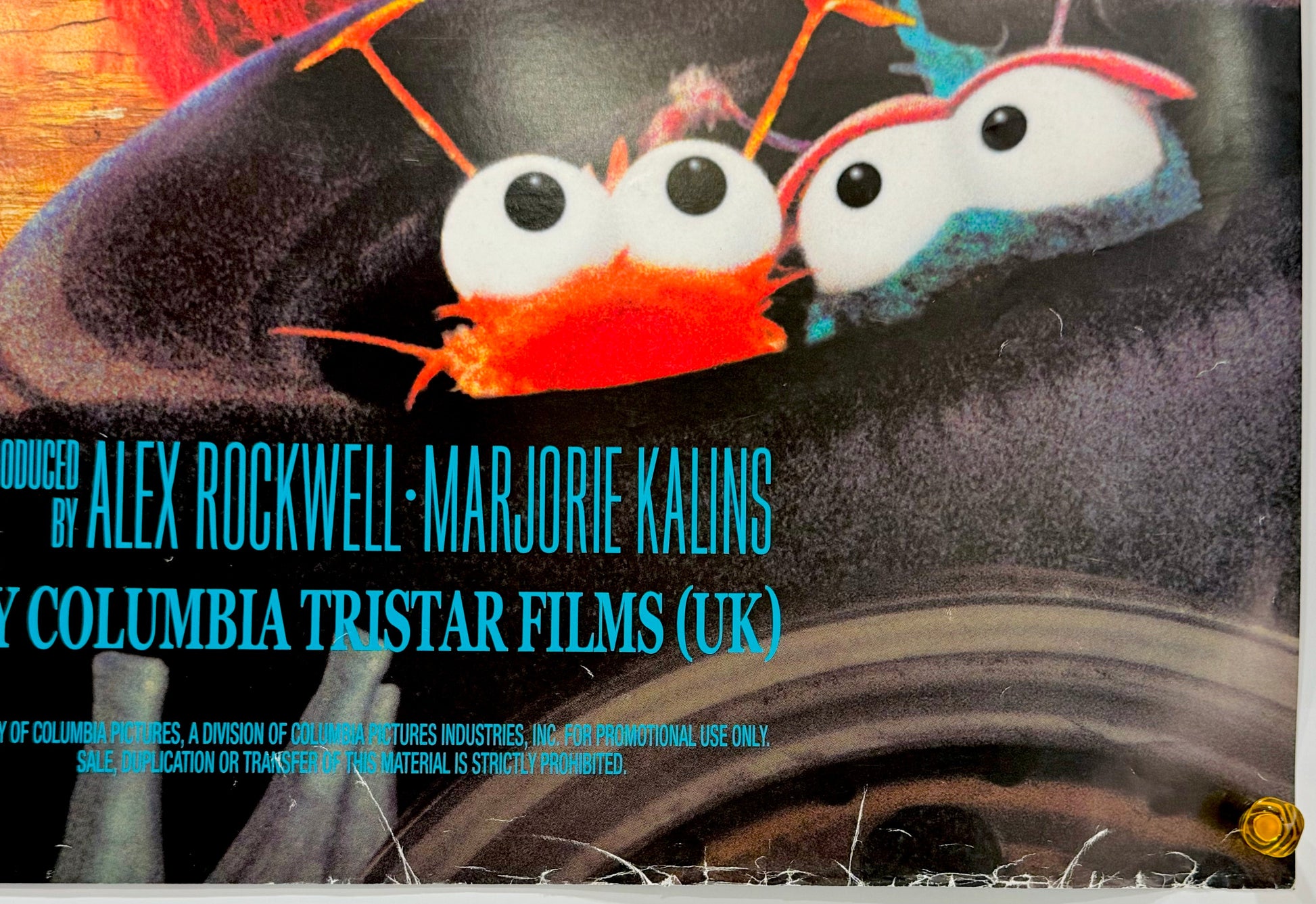 一部の国ではポスターの配送料を節約するため、配給会社がポスターを折り畳んで発送しておりました。折り畳み跡はその時についたものになります。